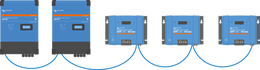 Wenn sie miteinander verbunden sind, synchronisieren alle einzelnen Laderegler ihre Ladestufen. Sie können ihre Daten auch über dasselbe Kabel zur Überwachung an ein GX-Gerät (wie z.B. den Cerbo GX) senden.