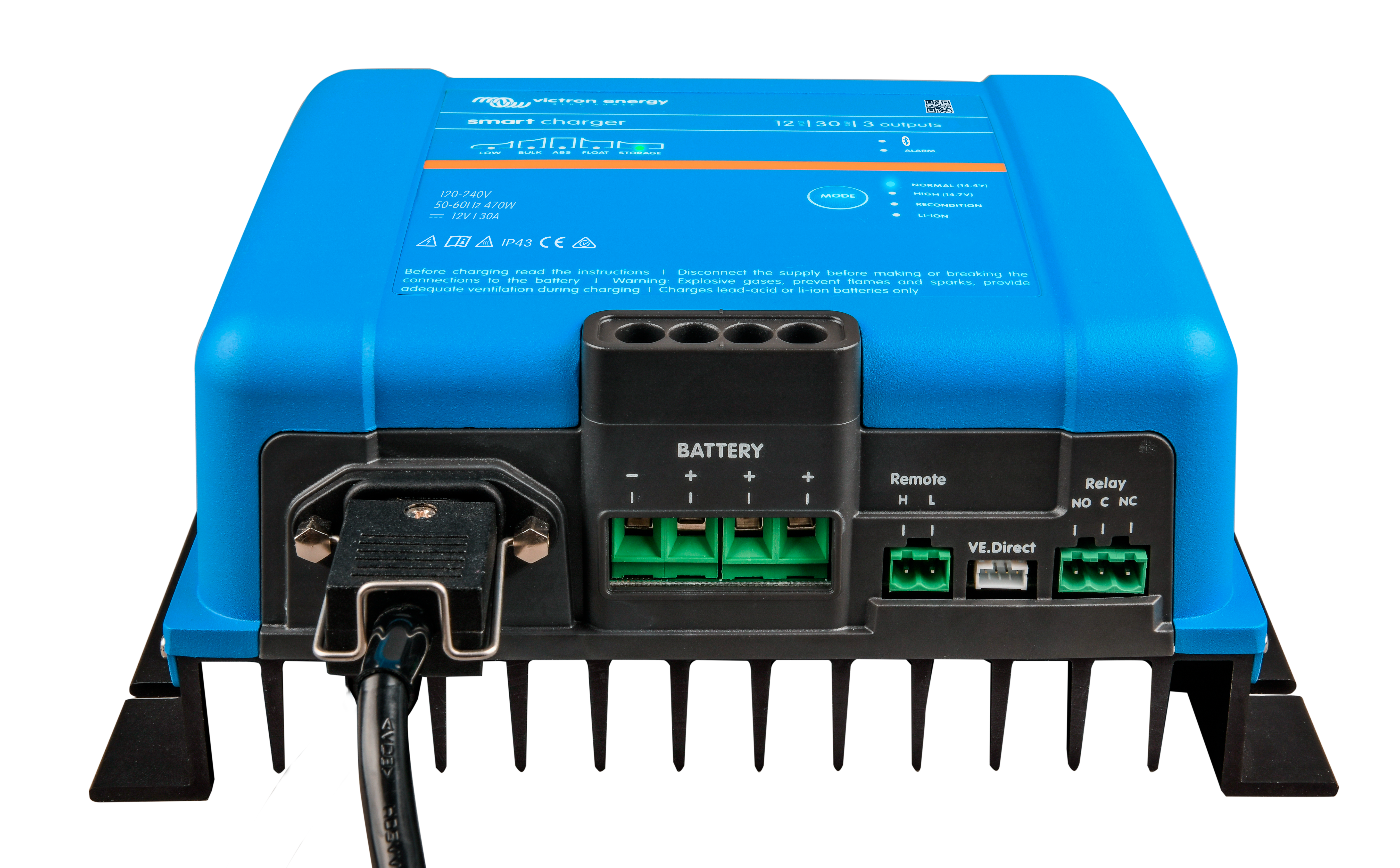 Mit Blick auf Bootsbesitzer kann dieses adaptive 5-stufige Ladegerät entweder 30A oder 50A Ladung für jede der drei Batteriebänke bereitstellen. Oder das Smart 1+1 Modell liefert 3A an die Starterbatterie, der Rest an die Hausbank. 24V-Modelle sind mit 16A/25A Ladung erhältlich. Bluetooth-fähig, können Sie das Ladegerät überwachen und Alarme direkt von Ihrem Handy aus einstellen. Adaptive, intelligente, dynamische Ladefunktionen - siehe Datenblatt unten.